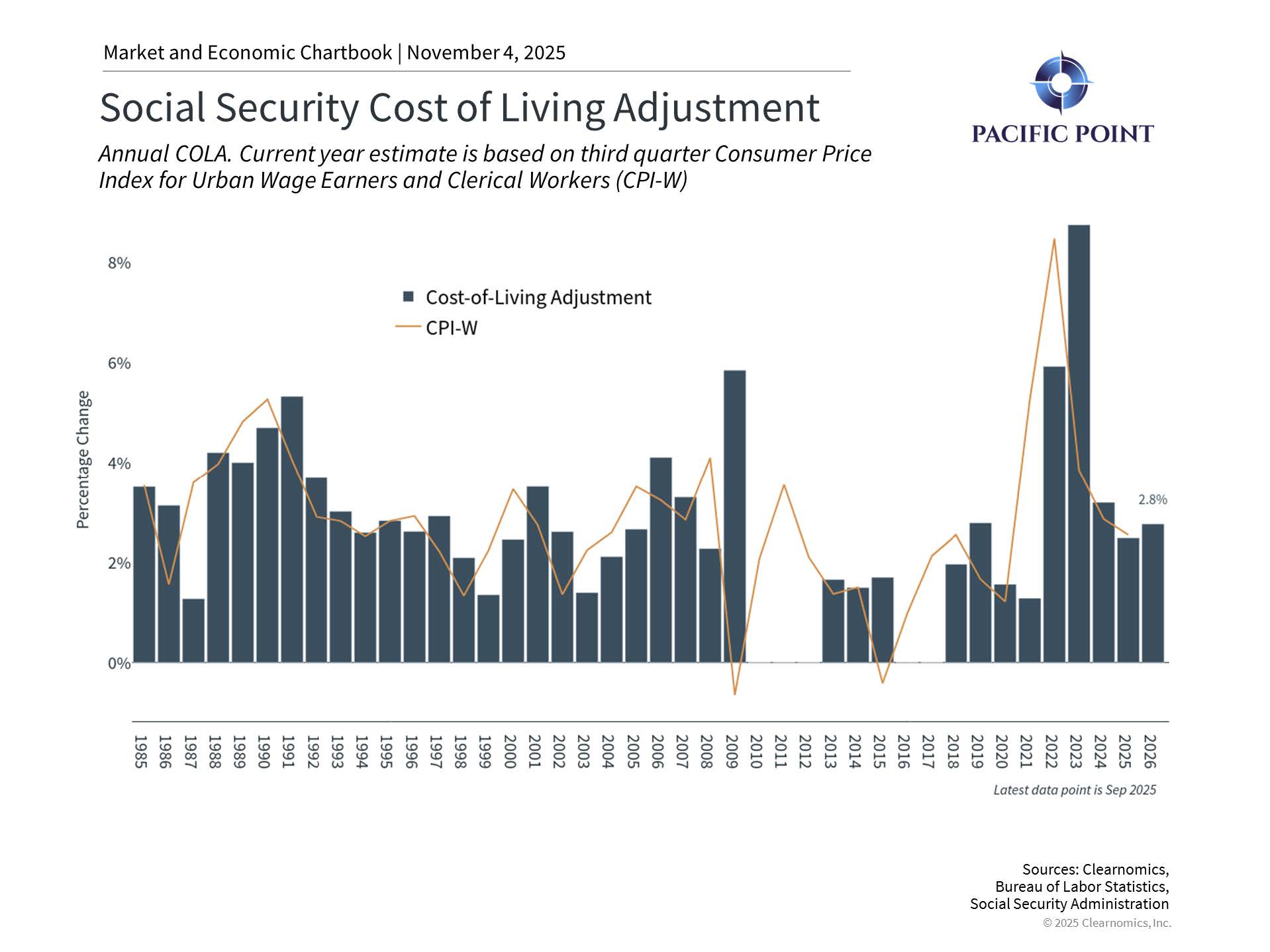 The Social Security Administration revealed a 2.8% cost-of-living adjustment for 2026, marking a notable decrease from recent years and potentially falling short of actual expense increases facing retirees. When combined with declining yields on cash investments, this development emphasizes the necessity of maintaining diversified portfolios that offer both income generation and capital appreciation potential.