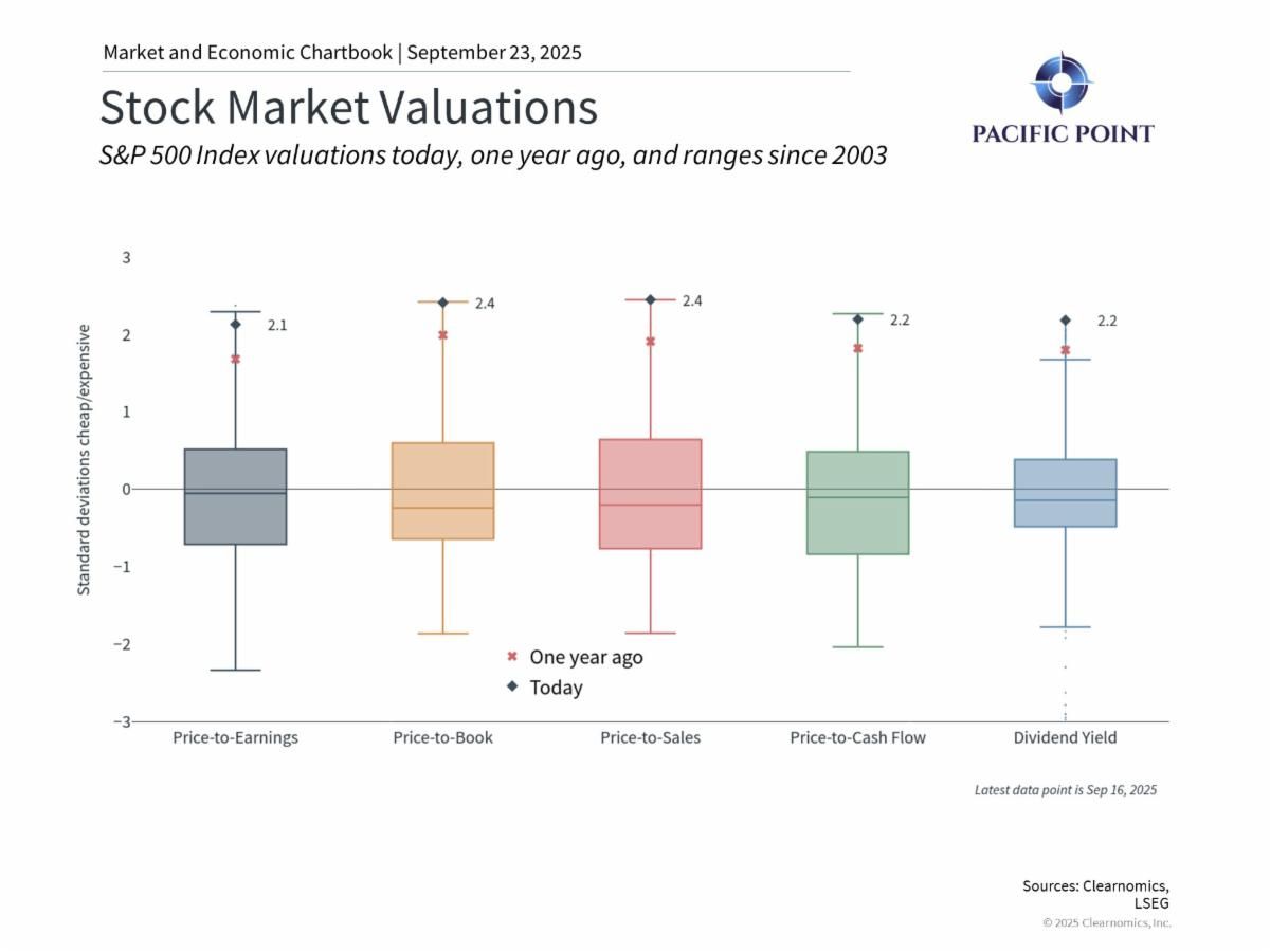 - Valuations vary by segment and are useful for context, but they don’t predict short-term market moves.